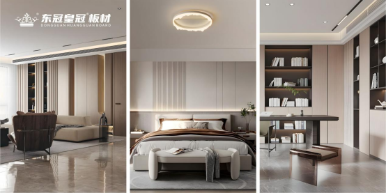木材的溫度,能瞬間軟化冰冷的空間。東冠皇冠板材適用于全屋定制,從櫥柜、衣柜到墻面、地板,都能以木紋的天然韻律,營造出寧靜而高級(jí)的氛圍。