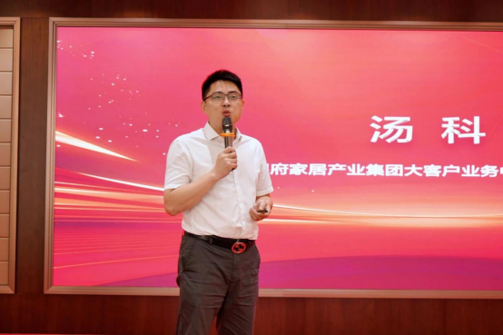旺德府家居集團(tuán)大客戶業(yè)務(wù)中心總經(jīng)理湯科先生,圍繞政策與產(chǎn)品賦能體系進(jìn)行詳細(xì)解讀。在闡述品牌及核心產(chǎn)品競(jìng)爭(zhēng)優(yōu)勢(shì)的同時(shí),重點(diǎn)強(qiáng)調(diào)板材+輔材的產(chǎn)品推廣布局,明確以此助力品牌與合作伙伴共同開拓高端家居市場(chǎng)。