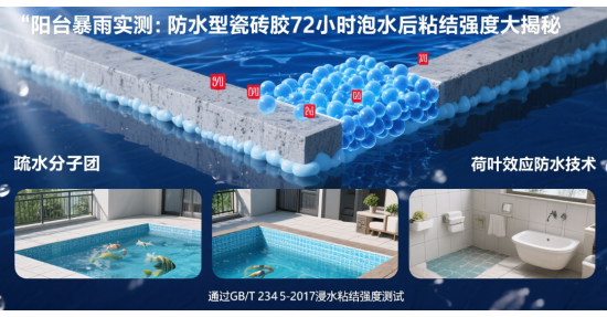 在家庭裝修中,陽臺作為連接室內與室外的過渡空間,常常會受到各種自然因素的考驗,其中暴雨就是一個不容忽視的問題。陽臺地面和墻面鋪設瓷磚時,選擇一款優(yōu)質的防水型中國瓷磚膠品牌至關重要。那么,防水型瓷磚膠在經歷長時間泡水后,其粘結強度究竟還剩多少呢?今天,我們就通過一場陽臺暴雨實測來一探究竟。