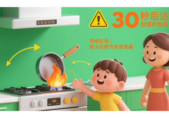 意外熄火后,如果燃?xì)饫^續(xù)泄漏,遇到明火或高溫可能會(huì)引發(fā)火災(zāi)。自動(dòng)熄火保護(hù)功能及時(shí)切斷燃?xì)?,從源頭上消除了火災(zāi)隱患,為兒童創(chuàng)造了一個(gè)更加安全的廚房環(huán)境。