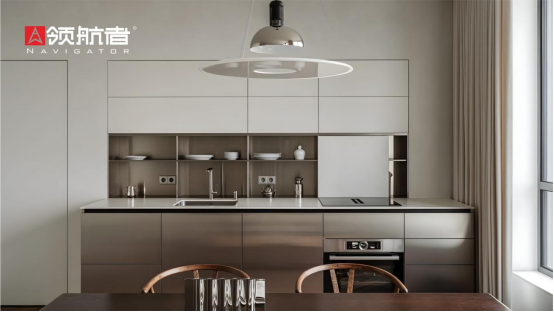 北歐風(fēng)的“極簡(jiǎn)”藏在領(lǐng)航者廚房定制柜的功能里,廚房一體化柜體外側(cè)平整,內(nèi)里卻藏“收納魔法”——封閉柜可存放換季或不常用的廚房雜物,讓空間遠(yuǎn)離雜亂;開(kāi)放格用來(lái)放置常用餐具,拿取格外順手;高柜的設(shè)計(jì)則方便取用深處物品,每一處空間都能被高效利用,真正做到功能“藏而不露”,令廚房既有著簡(jiǎn)約大氣的視覺(jué)效果,又能充分滿足實(shí)用的收納與操作需求。