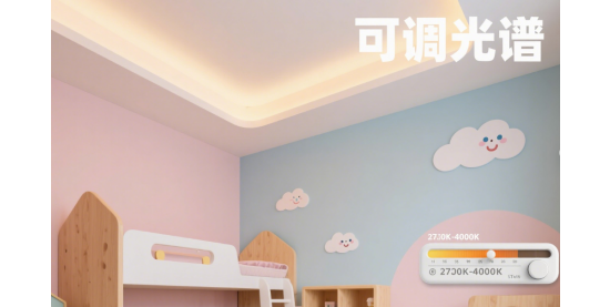 為了實(shí)現(xiàn)2700K-4000K可調(diào)光譜的功能,建議選擇具有智能控制功能的燈具。可以通過手機(jī)APP或智能開關(guān)輕松調(diào)節(jié)燈光的色溫、亮度等參數(shù),滿足孩子不同場景下的需求。