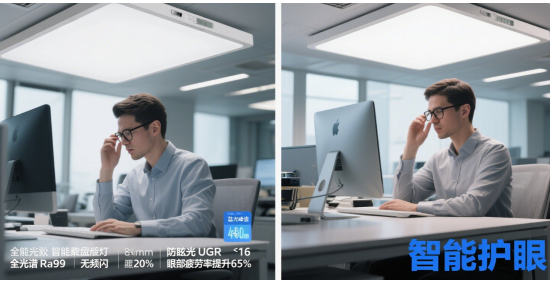 全光譜智能面板燈最大的亮點之一就是其光譜接近自然光。自然光包含了各種波長的光線,對我們的眼睛最為友好。這款面板燈通過特殊的技術(shù),模擬出了自然光的光譜,能夠提供更加均勻、柔和的光線。在這種燈光下工作,就如同在戶外自然光下一樣,眼睛能夠更加舒適地看清事物,大大降低了眼部疲勞的產(chǎn)生。研究表明,使用全光譜智能面板燈后,眼部疲勞可以降低70%之多。